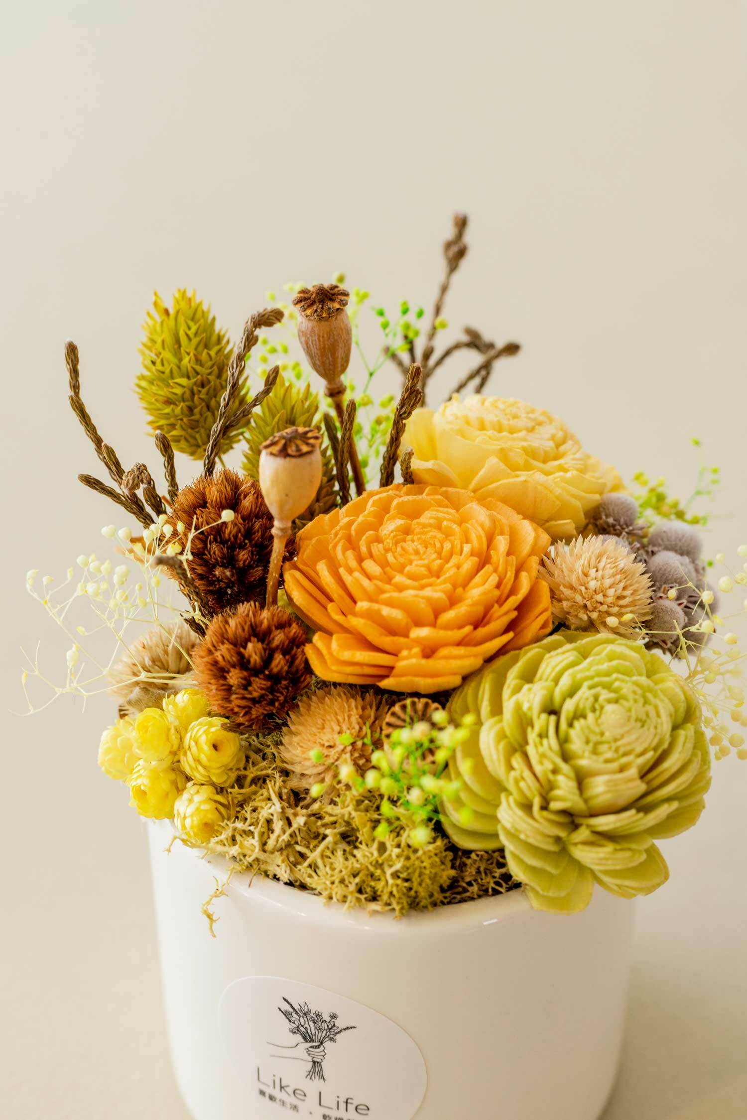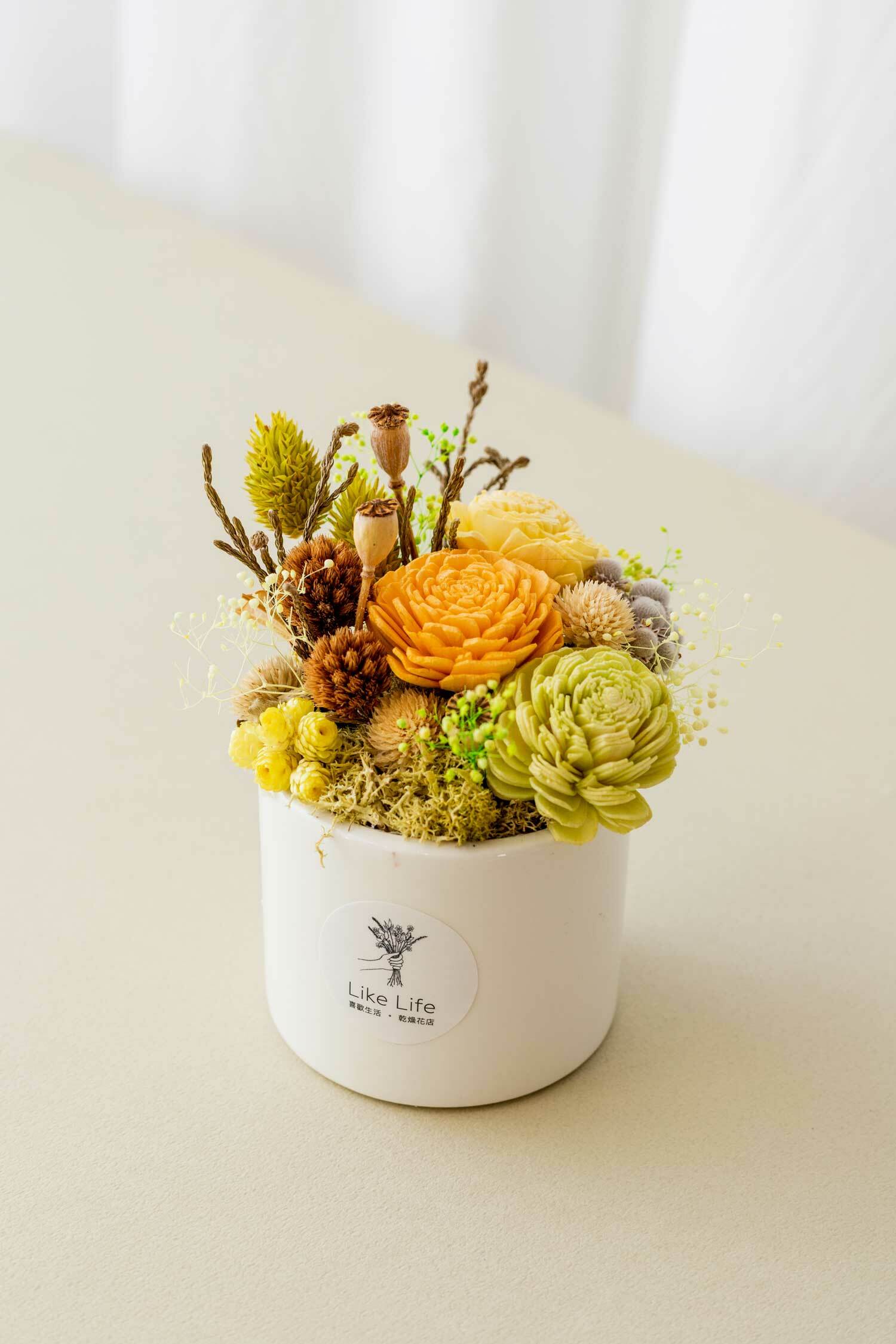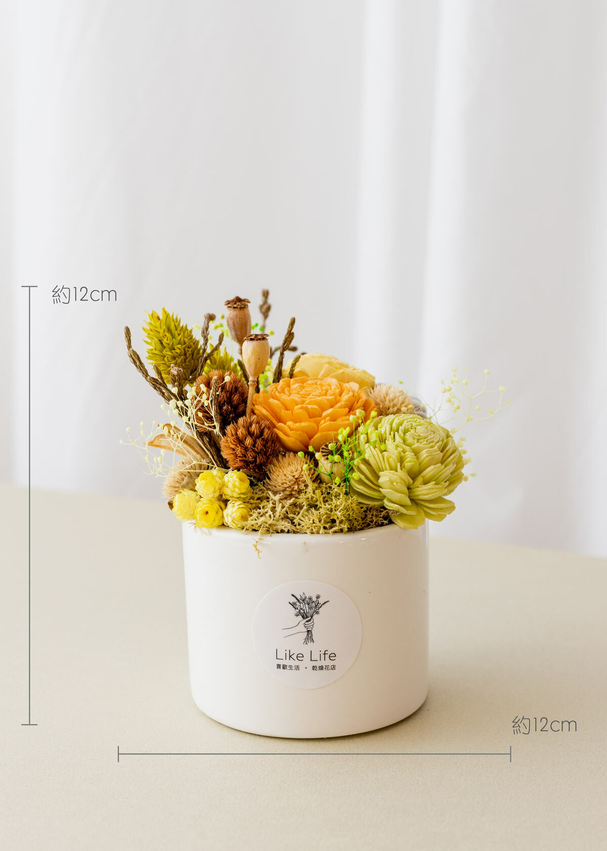 黃色乾燥花盆栽|有著敦厚善良的代表