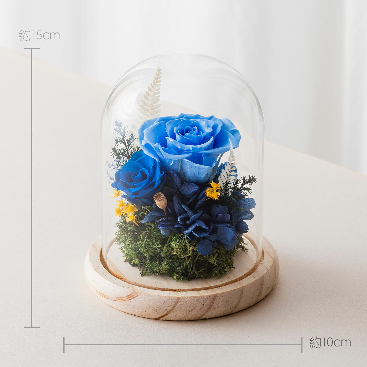 ※永生花是將玫瑰花,透過脫水與風乾的專利技術,保持著鮮花外觀和水份組織,不需要澆水和曬太陽,維持乾燥環境就可保存2~3年以上