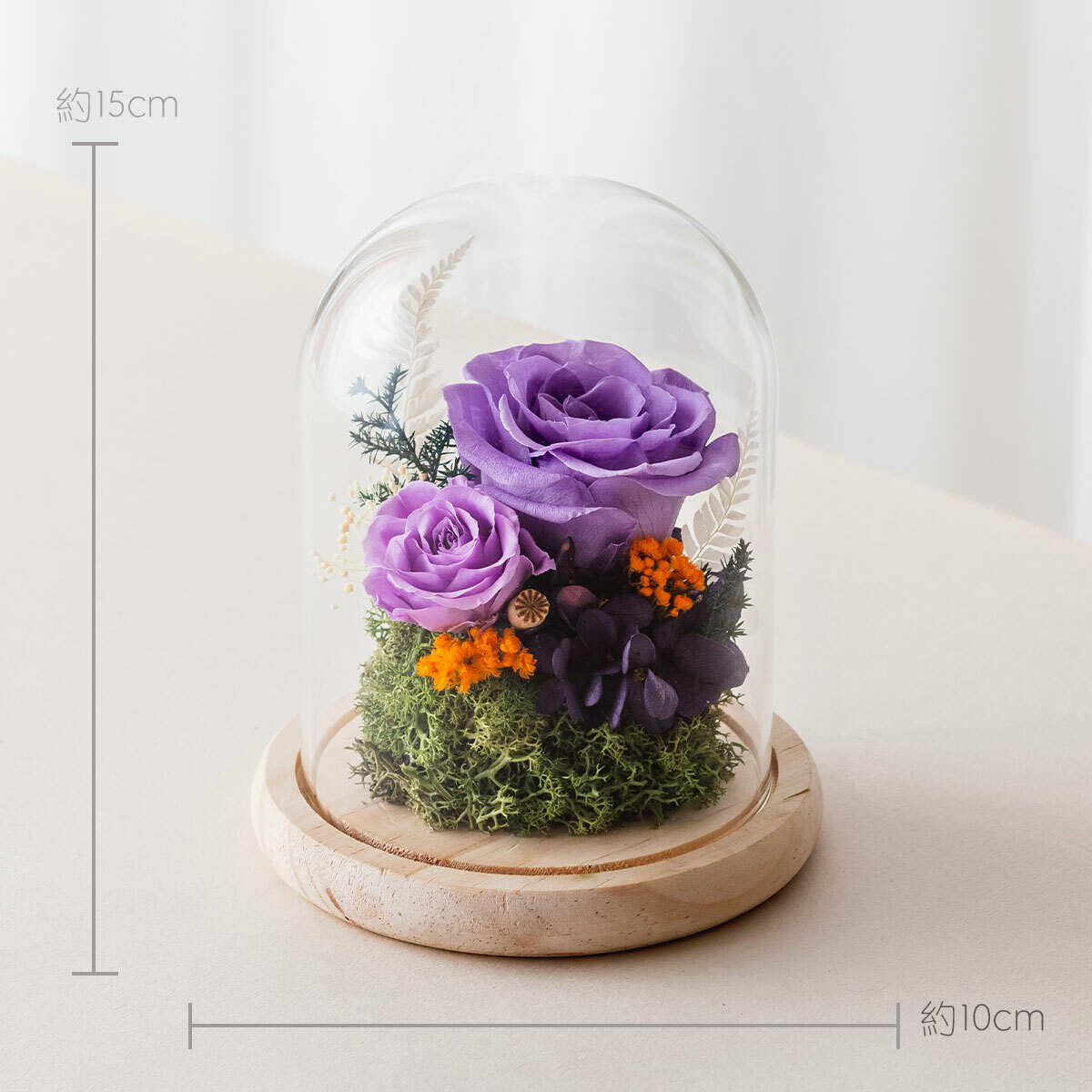 ※永生花是將玫瑰花,透過脫水與風乾的專利技術,保持著鮮花外觀和水份組織,不需要澆水和曬太陽,維持乾燥環境就可保存2~3年以上