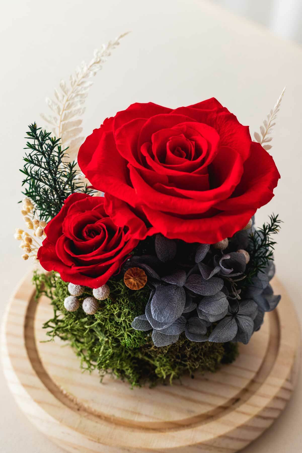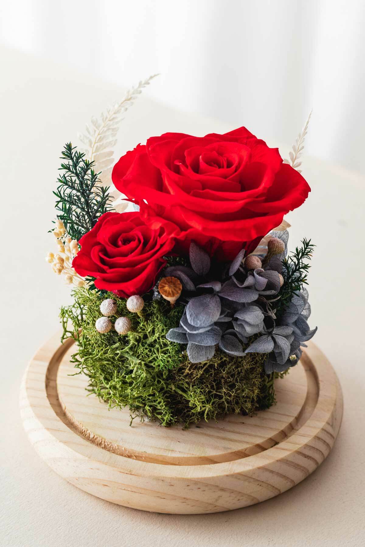 ※永生花是將玫瑰花,透過脫水與風乾的專利技術,保持著鮮花外觀和水份組織,不需要澆水和曬太陽,維持乾燥環境就可保存2~3年以上
