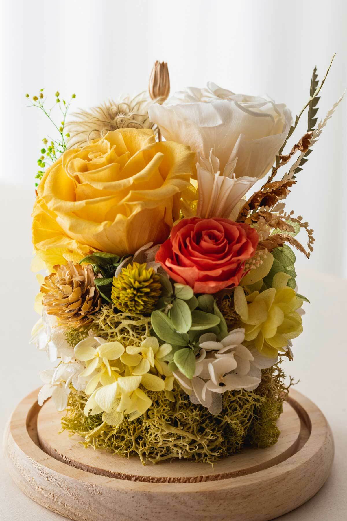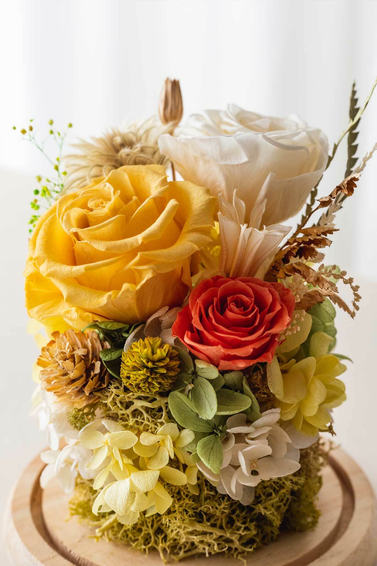 ※永生花是將玫瑰花,透過脫水與風乾的專利技術,保持著鮮花外觀和水份組織,不需要澆水和曬太陽,維持乾燥環境就可保存2~3年以上