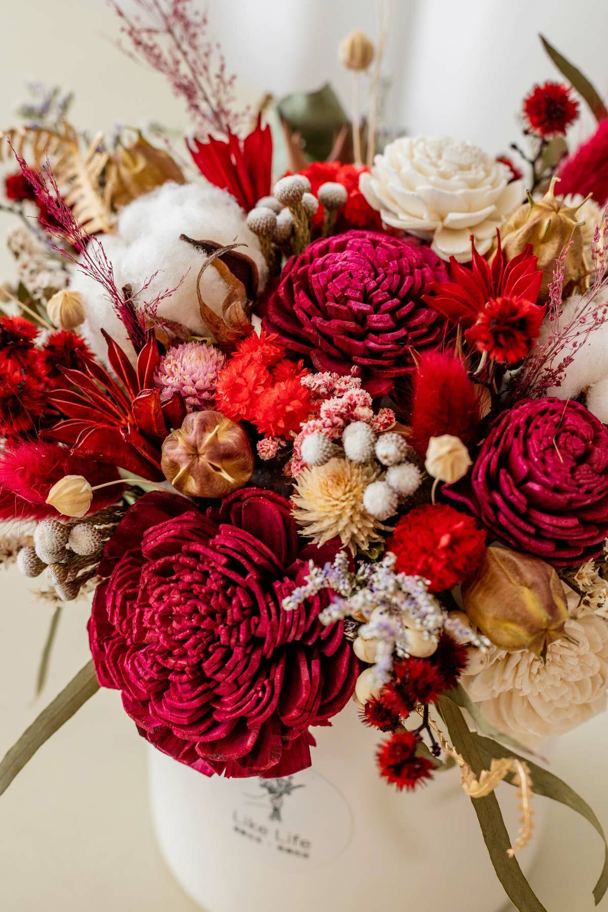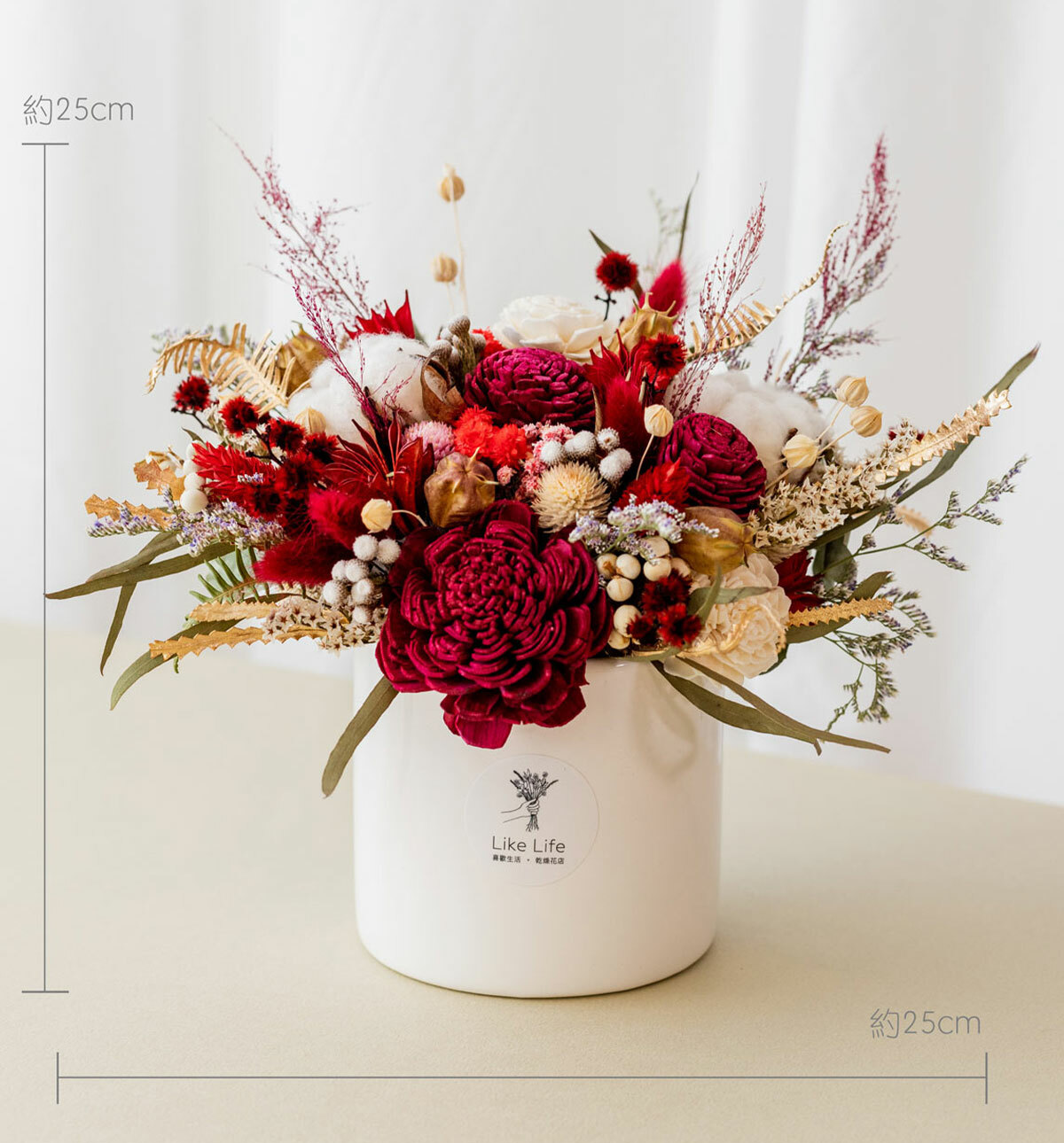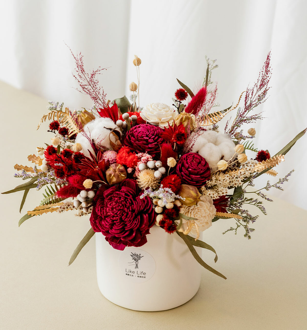 紅色乾燥花盆栽|興旺繁盛的吉祥代表色