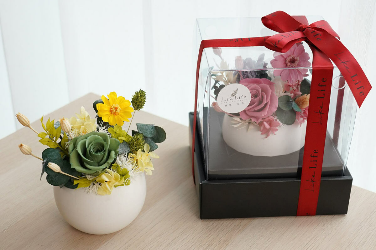 ※永生花是將玫瑰花,透過脫水與風乾的專利技術,保持著鮮花外觀和水份組織,不需要澆水和曬太陽,維持乾燥環境就可保存2~3年以上