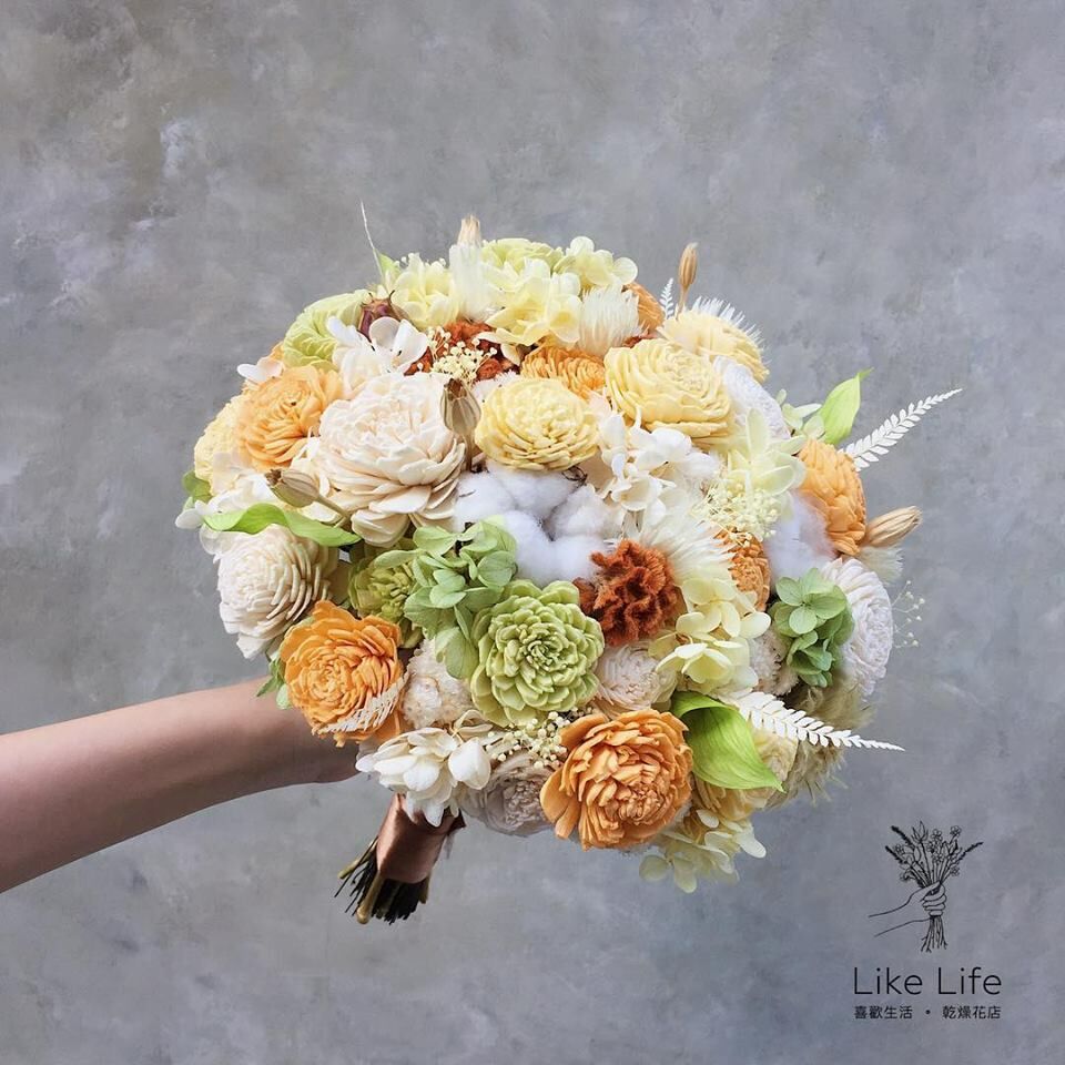 乾燥花新娘捧花,保留鮮花原始的樣子