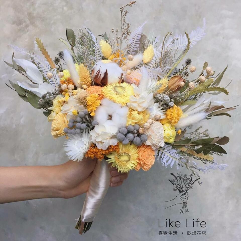 乾燥花新娘捧花,保留鮮花原始的樣子