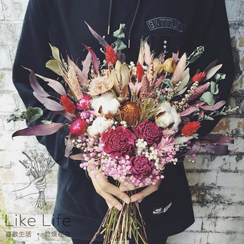 • 喜歡生活乾燥花店將專業的配置適合的乾燥花材、搭配的最適合的花語