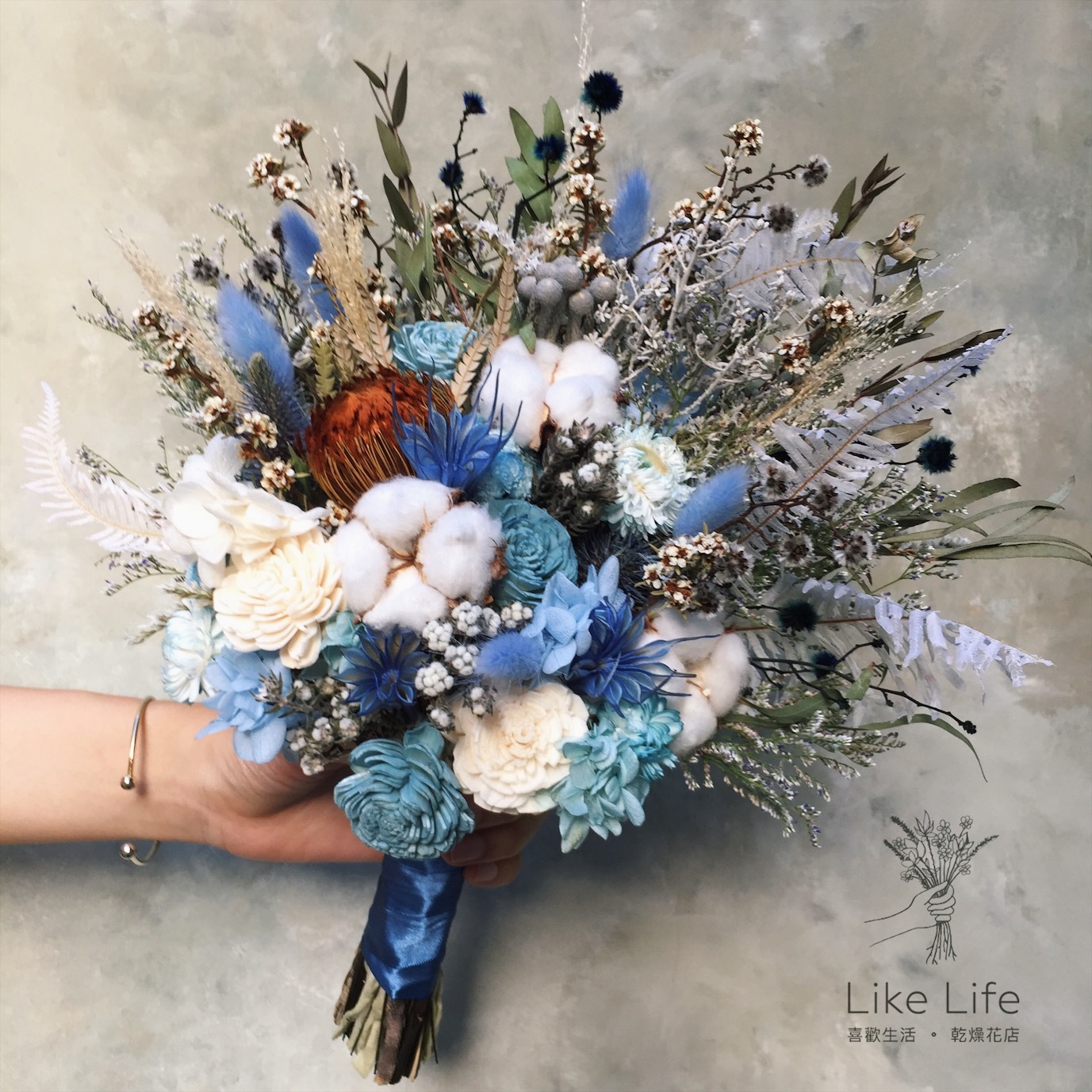 韓式扇型手綁乾燥捧花-不凋叢林藍