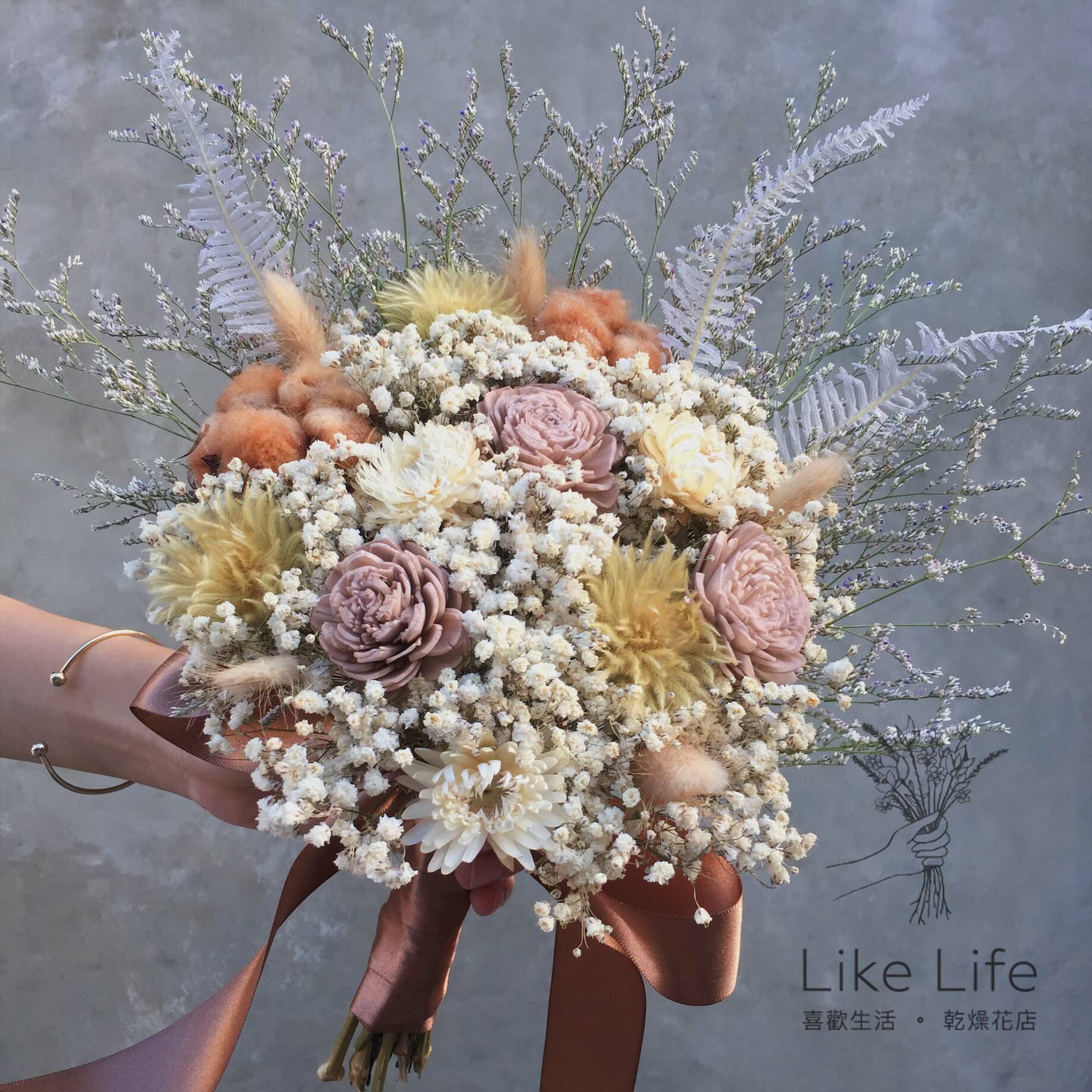乾燥花新娘捧花,保留鮮花原始的樣子