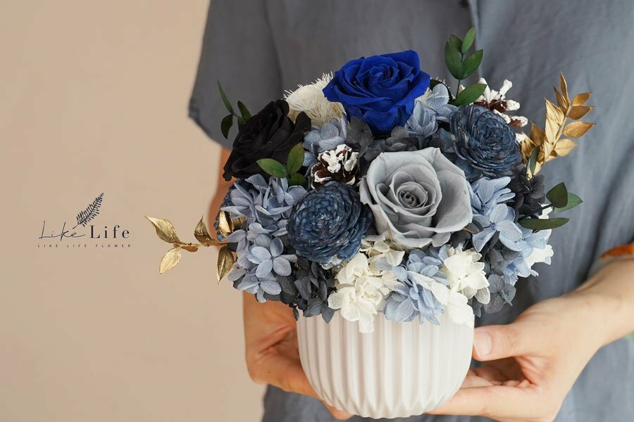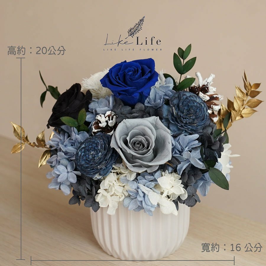 ※永生花是將玫瑰花,透過脫水與風乾的專利技術,保持著鮮花外觀和水份組織,不需要澆水和曬太陽,維持乾燥環境就可保存2~3年以上