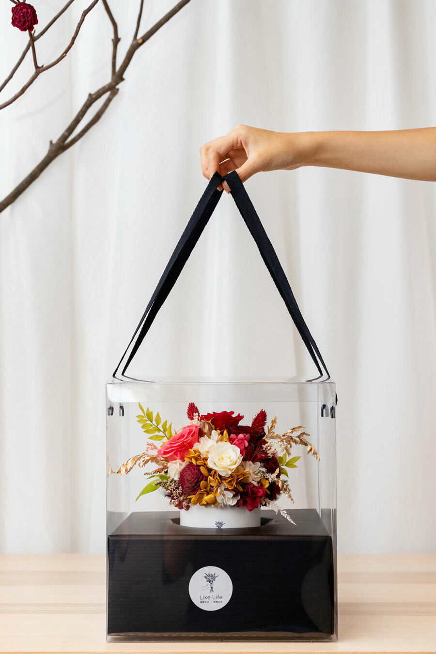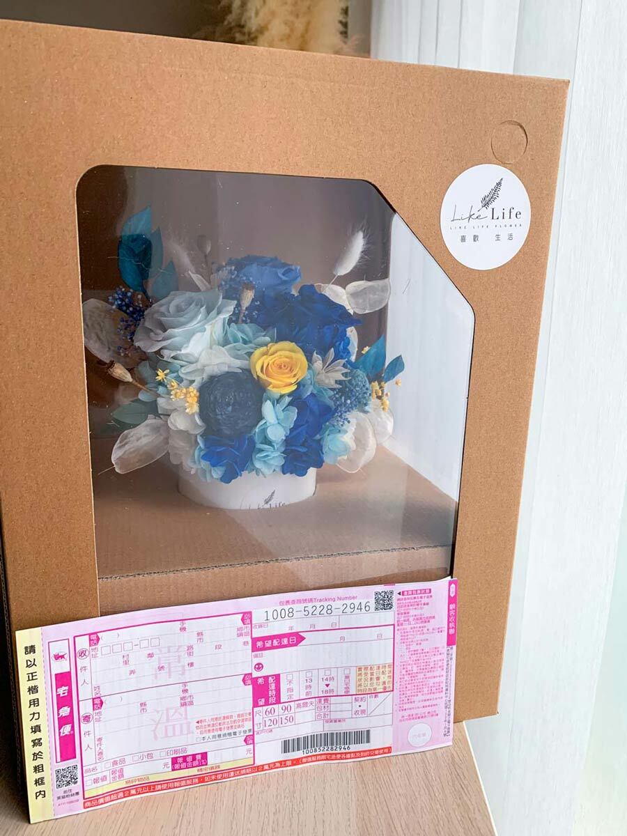 ※永生花是將玫瑰花,透過脫水與風乾的專利技術,保持著鮮花外觀和水份組織,不需要澆水和曬太陽,維持乾燥環境就可保存2~3年以上