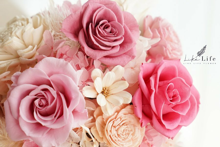 ※永生花是將玫瑰花,透過脫水與風乾的專利技術,保持著鮮花外觀和水份組織,不需要澆水和曬太陽,維持乾燥環境就可保存2~3年以上