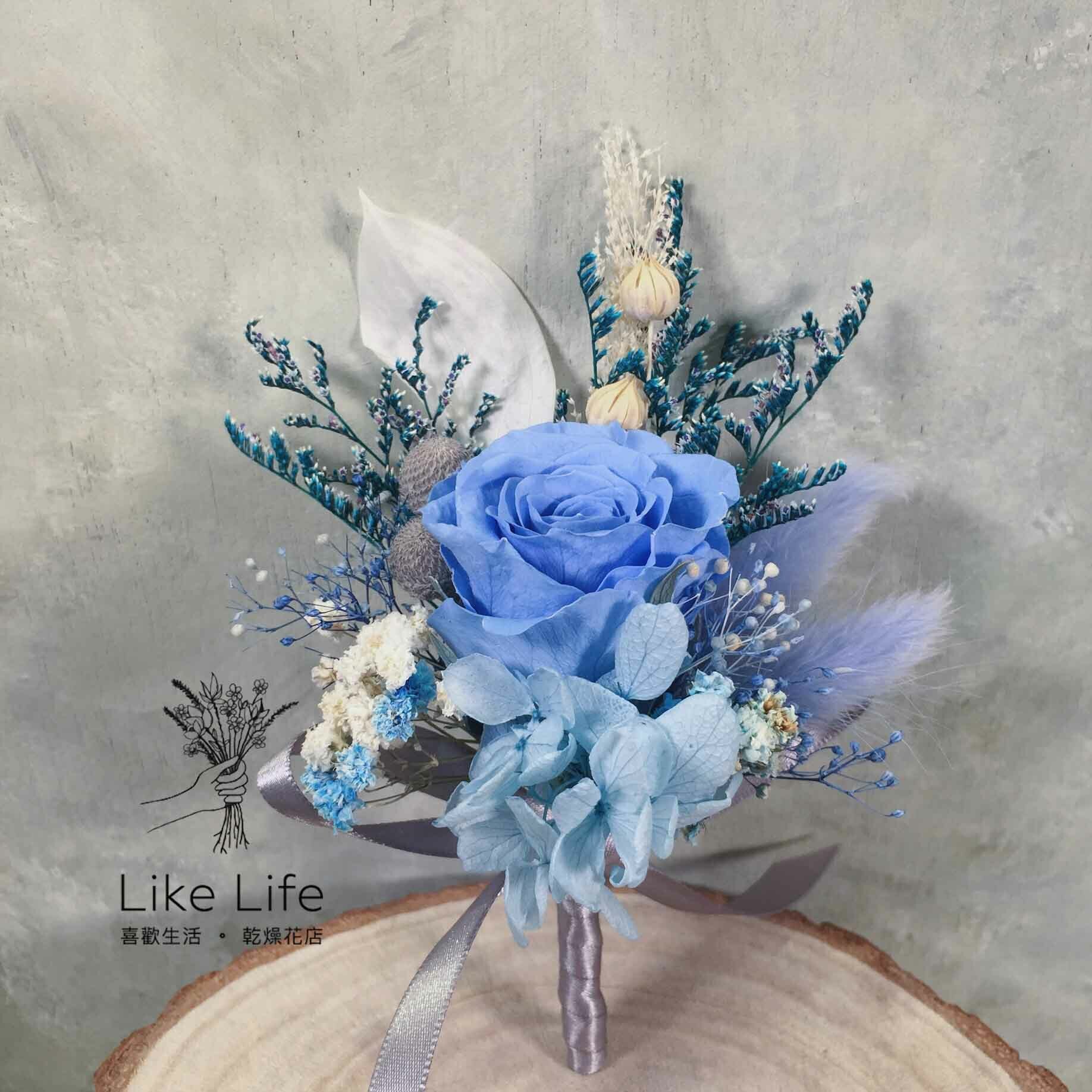 •新郎胸花-永生花胸花淺藍色(花朵5 cm)