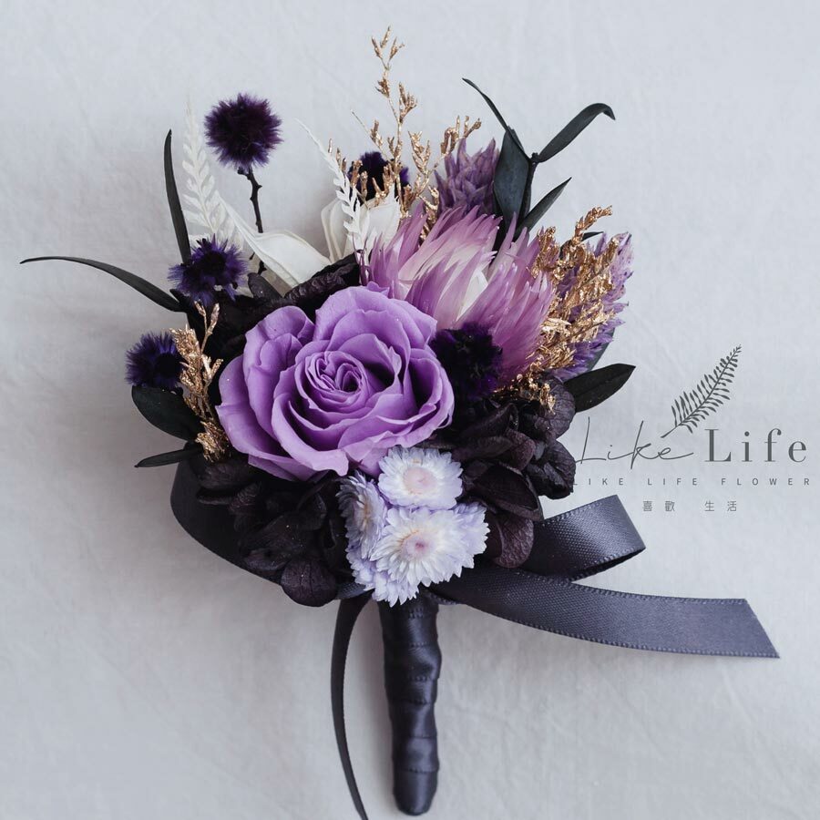 •伴郎胸花-永生花胸花紫色(花朵3cm)