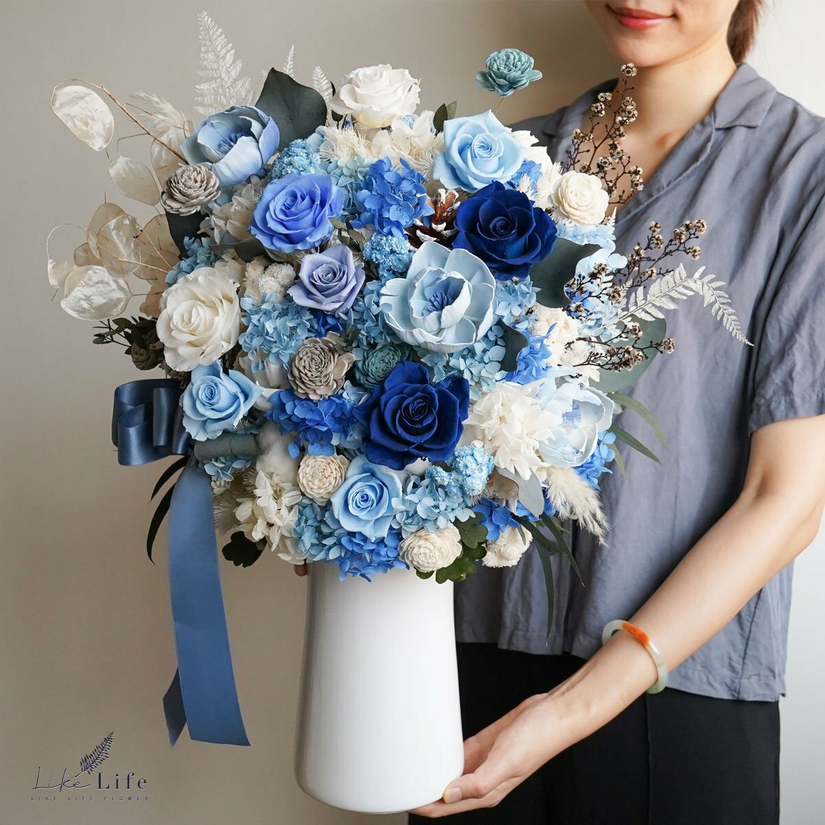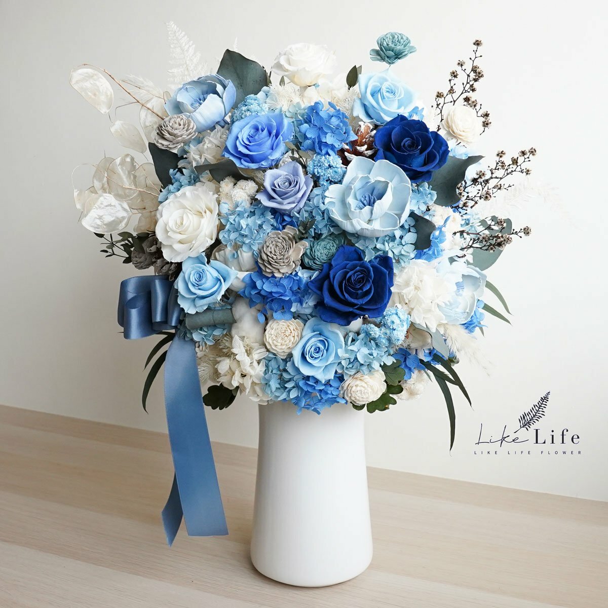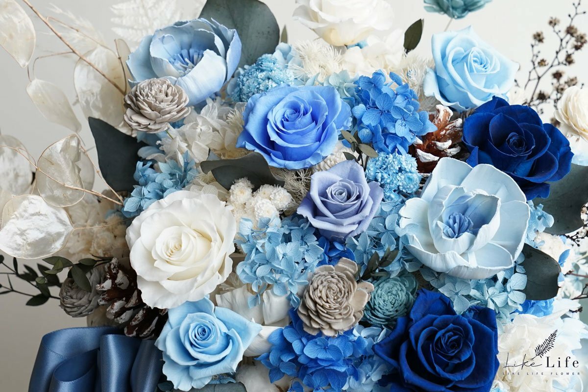 ※永生花是將玫瑰花,透過脫水與風乾的專利技術,保持著鮮花外觀和水份組織,不需要澆水和曬太陽,維持乾燥環境就可保存2~3年以上