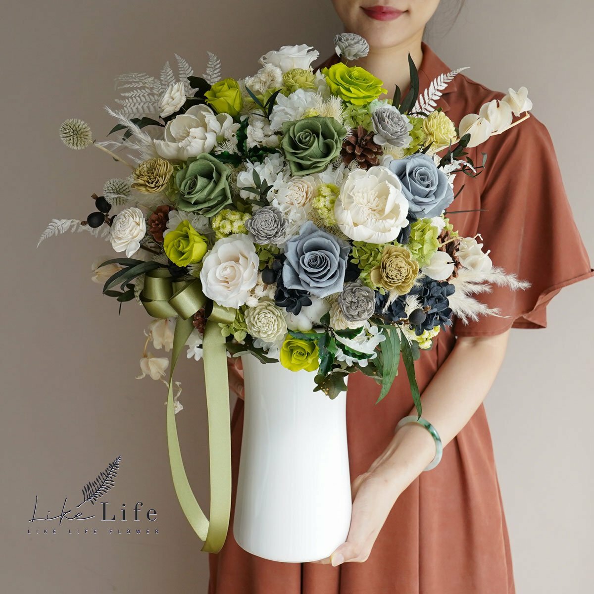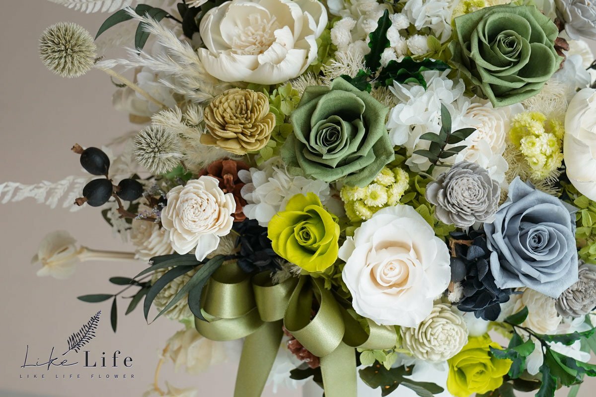 ※永生花是將玫瑰花,透過脫水與風乾的專利技術,保持著鮮花外觀和水份組織,不需要澆水和曬太陽,維持乾燥環境就可保存2~3年以上
