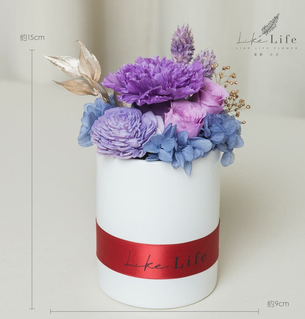 ※永生花是將玫瑰花,透過脫水與風乾的專利技術,保持著鮮花外觀和水份組織,不需要澆水和曬太陽,維持乾燥環境就可保存2~3年以上