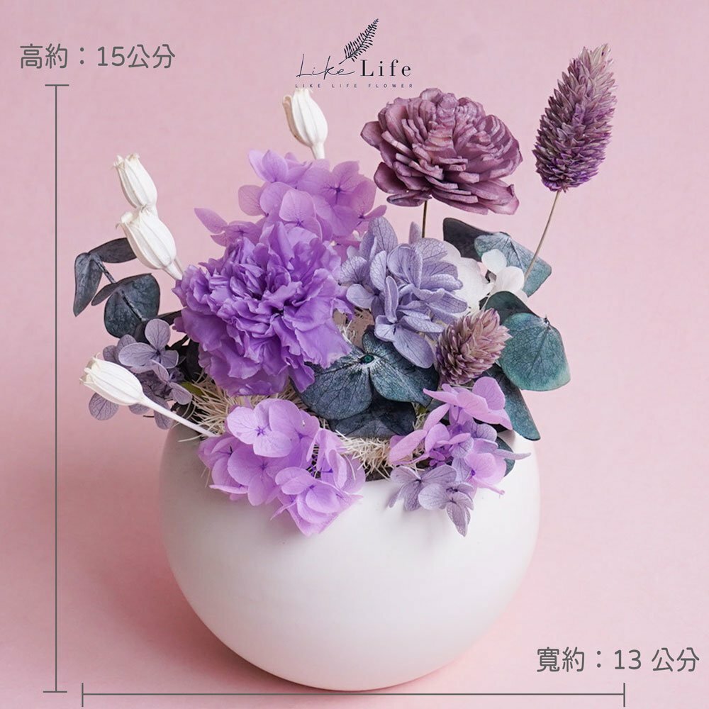 ※永生花是將玫瑰花,透過脫水與風乾的專利技術,保持著鮮花外觀和水份組織,不需要澆水和曬太陽,維持乾燥環境就可保存2~3年以上