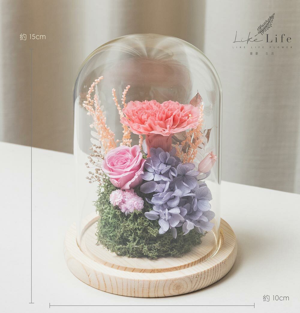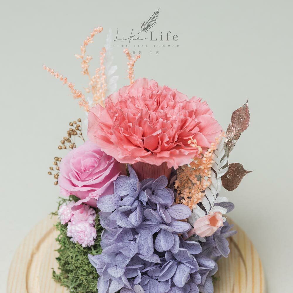 ※永生花是將玫瑰花,透過脫水與風乾的專利技術,保持著鮮花外觀和水份組織,不需要澆水和曬太陽,維持乾燥環境就可保存2~3年以上