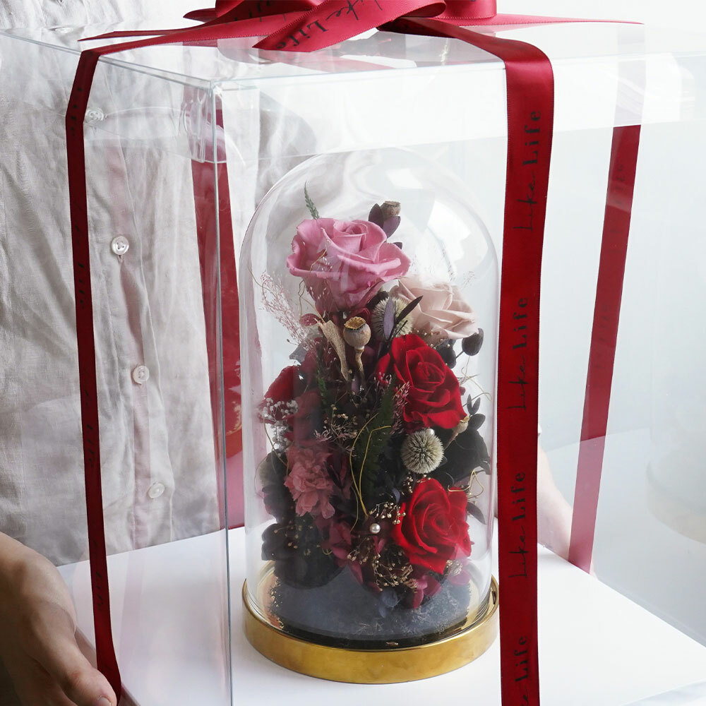 ※永生花是將玫瑰花,透過脫水與風乾的專利技術,保持著鮮花外觀和水份組織,不需要澆水和曬太陽,維持乾燥環境就可保存2~3年以上