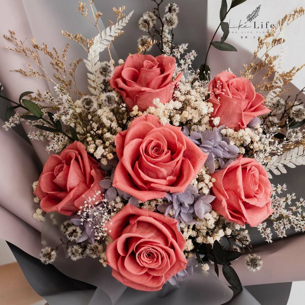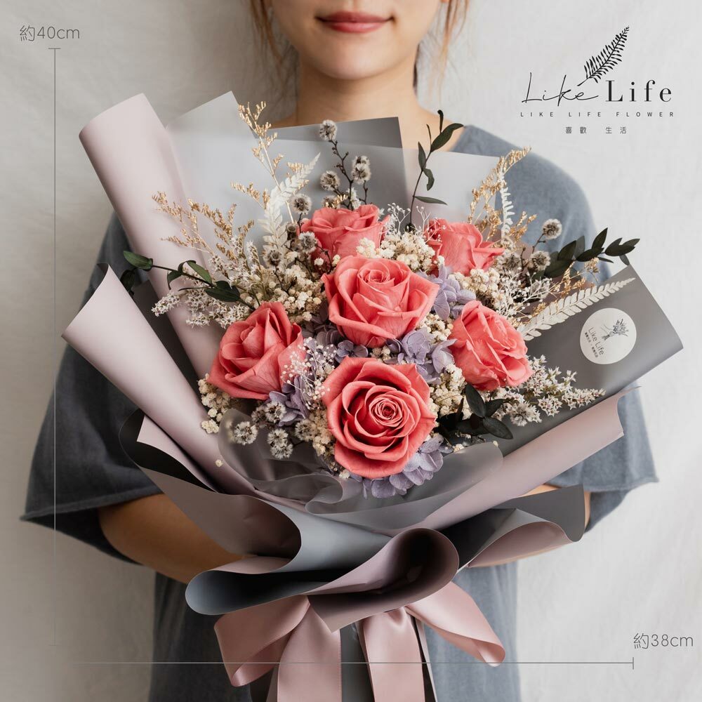 裸粉色永生玫瑰花束/花語:喜歡妳那燦爛的笑容
