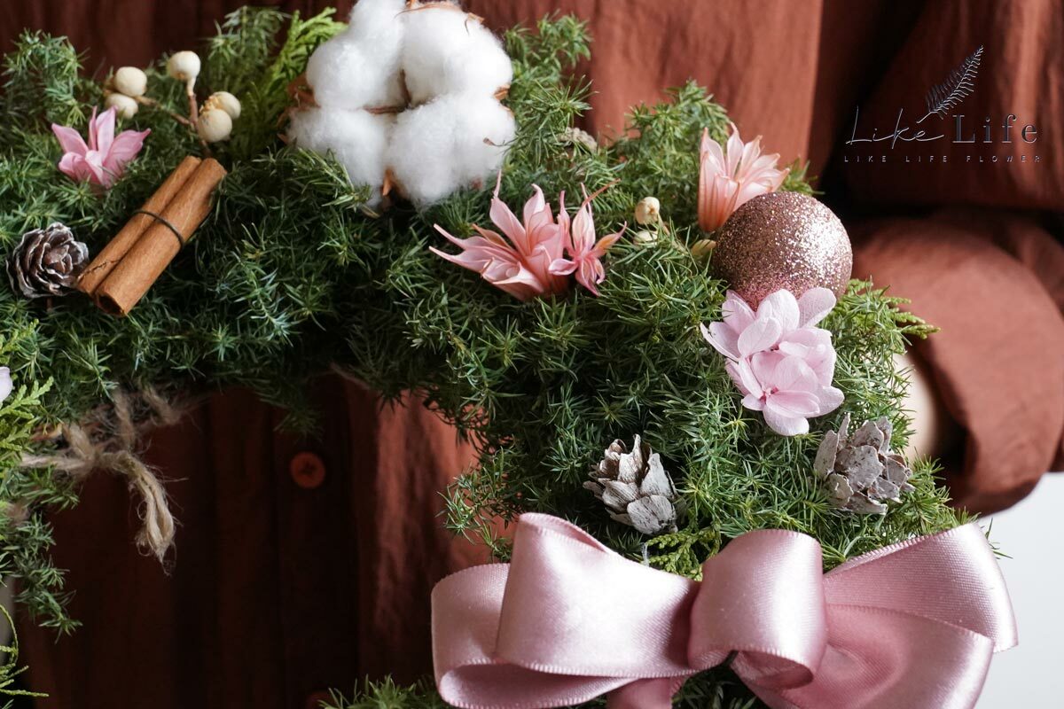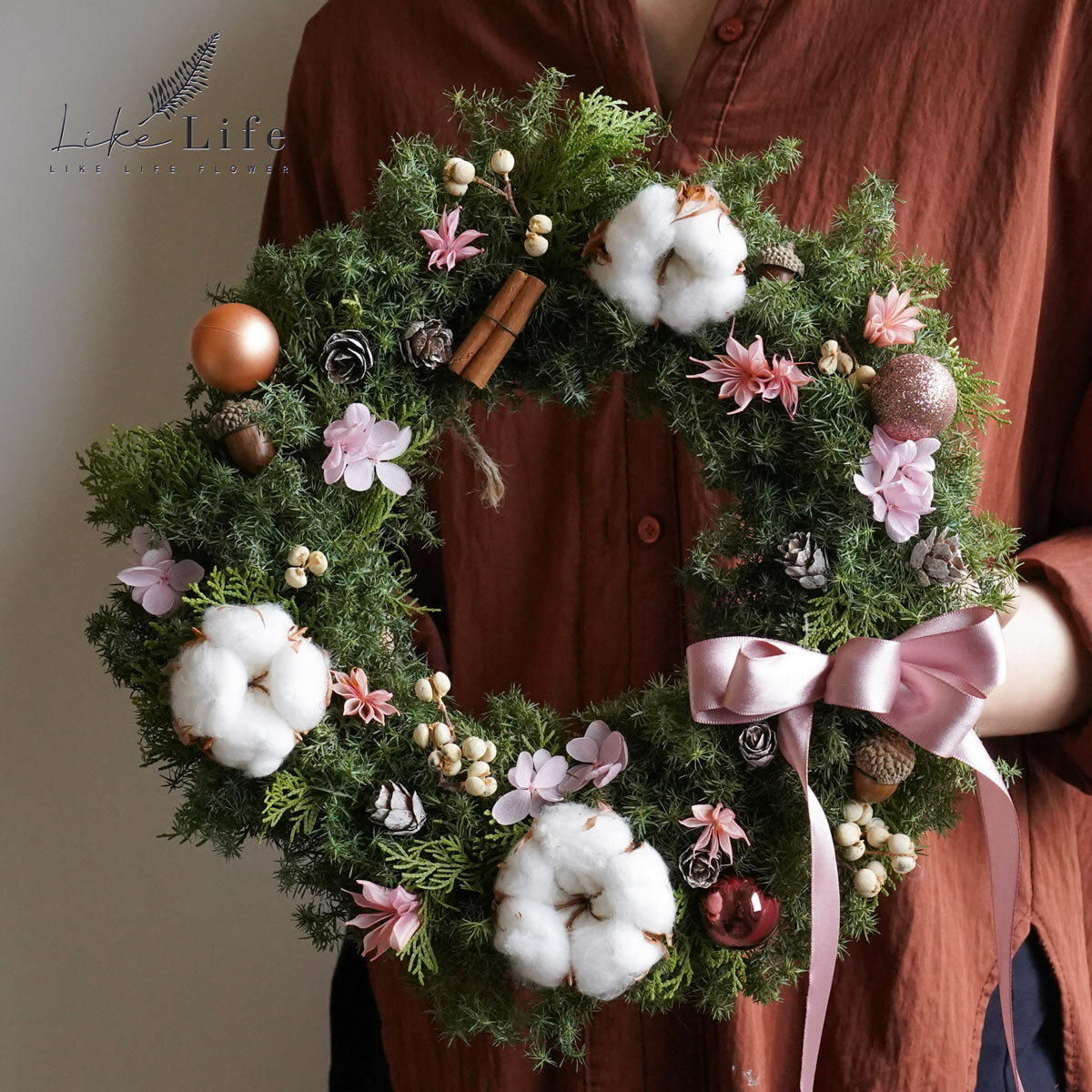 粉色聖誕花圈|象徵彼此將會甜蜜一整年